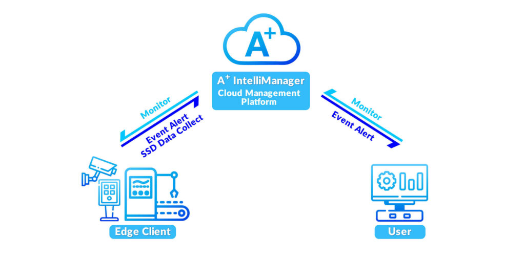 ADATA Industrial offers software solutions tailored for industrial needs. A⁺ IntelliManager, our patented platform (Patent No. I872903), enables centralized SSD monitoring, lifespan prediction, and failure alerts. It enhances system stability and operational efficiency through predictive maintenance.